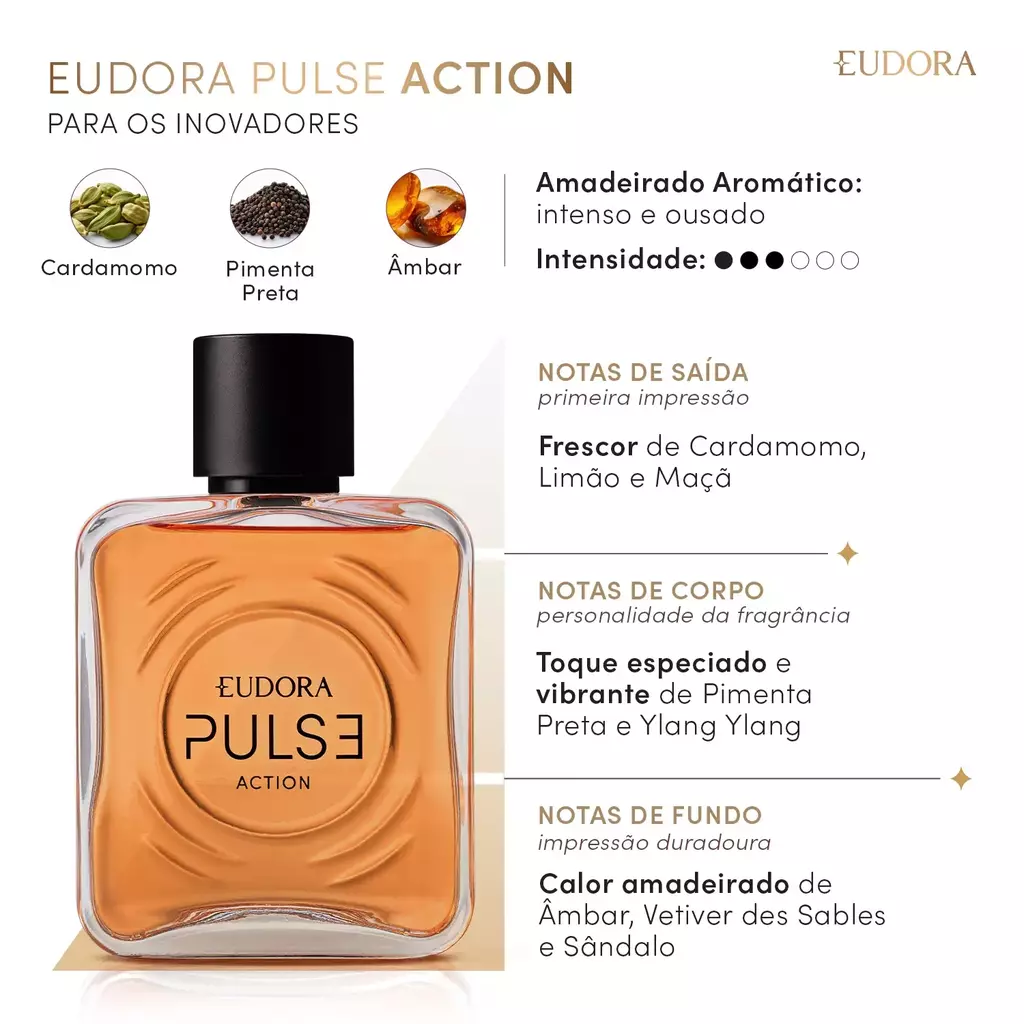 Eudora Pulse Action Desodorante Colônia é um item de perfumaria masculina cheio de propósito, ideal para quem gosta de inovar, se arriscar e ir além.